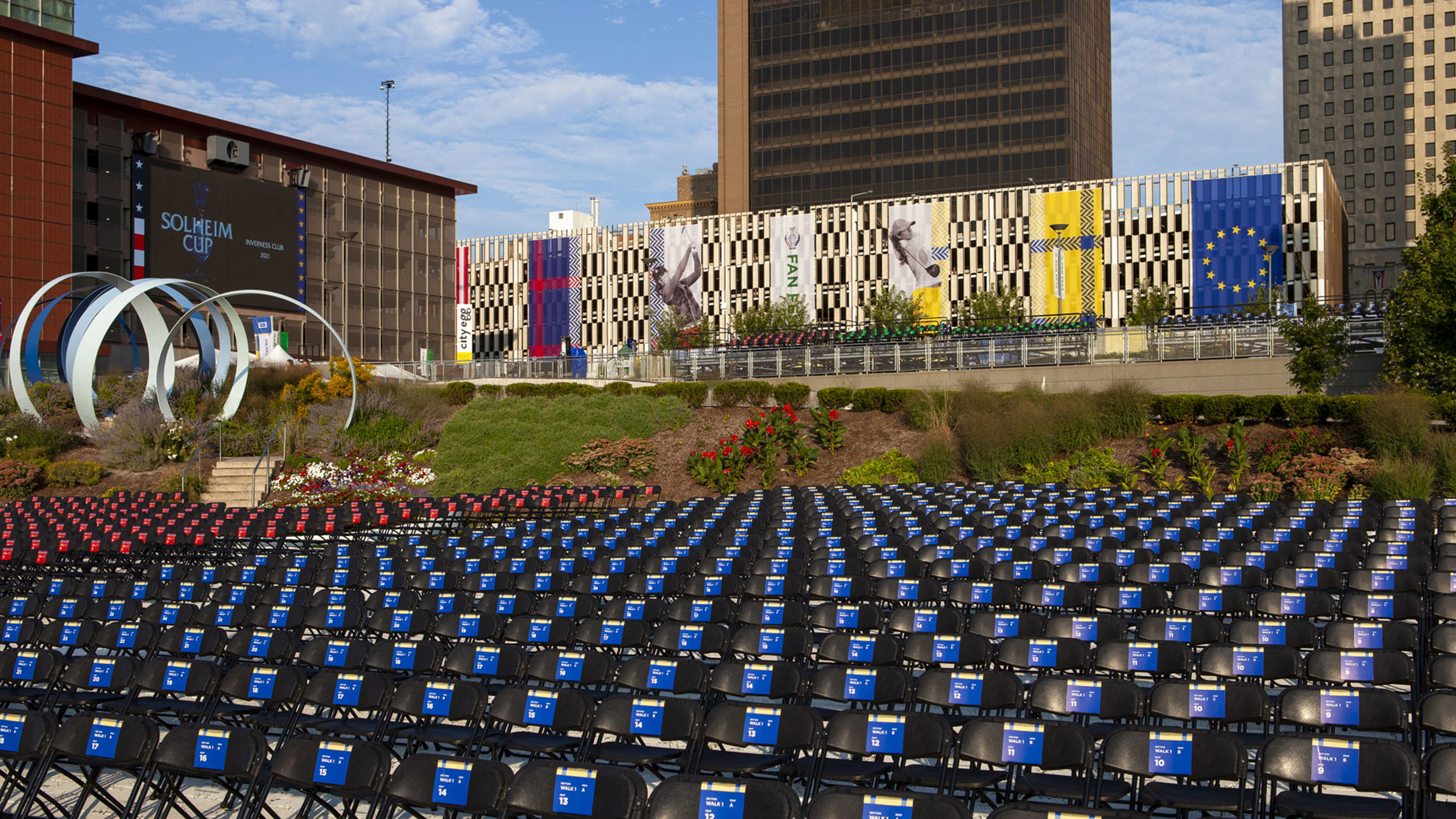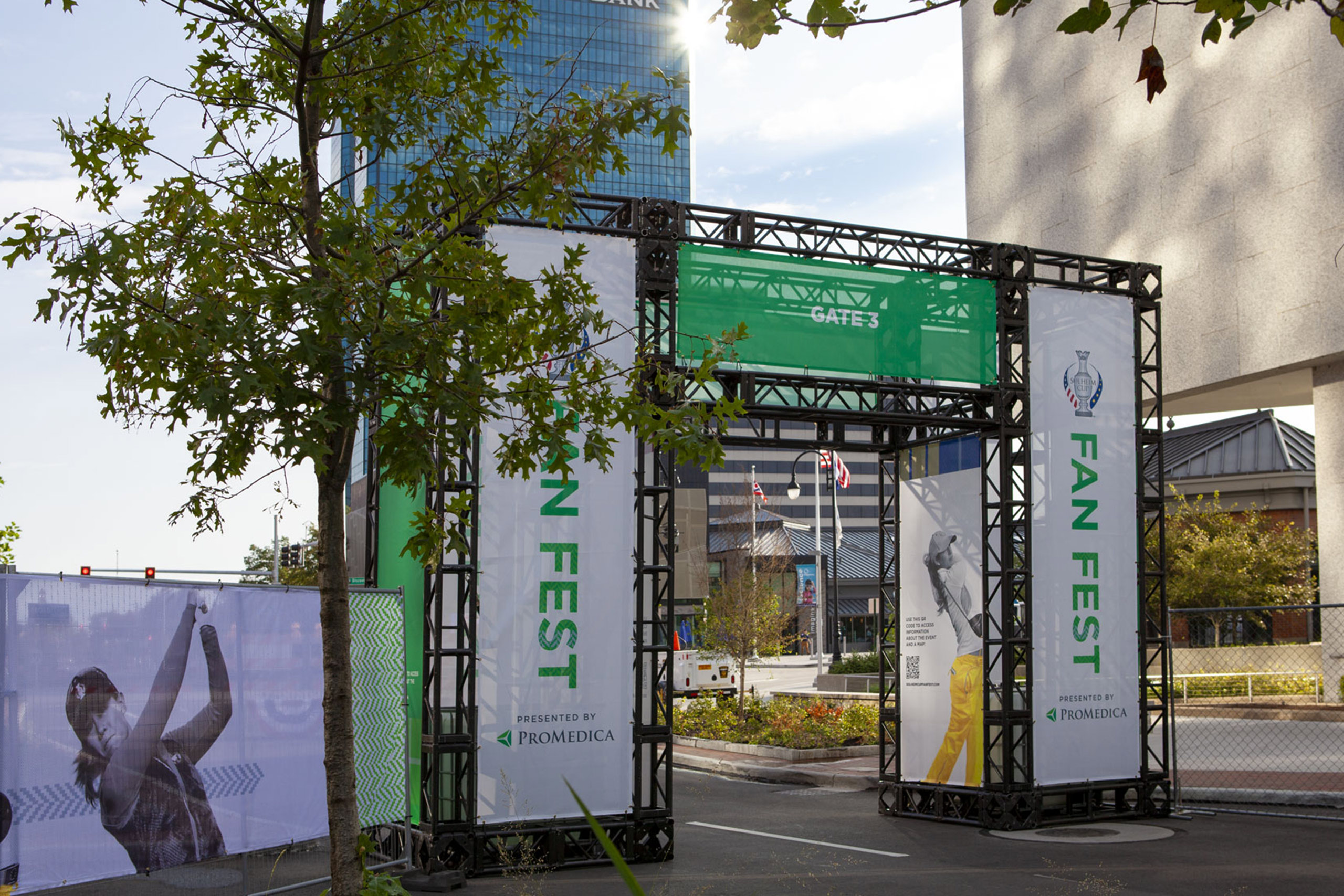 In 2021, Toledo was chosen as the host city for the LPGA Solheim Cup. ProMedica, the gracious sponsor of the Fan Fest event engaged Everwild to create event graphics and wayfinding.