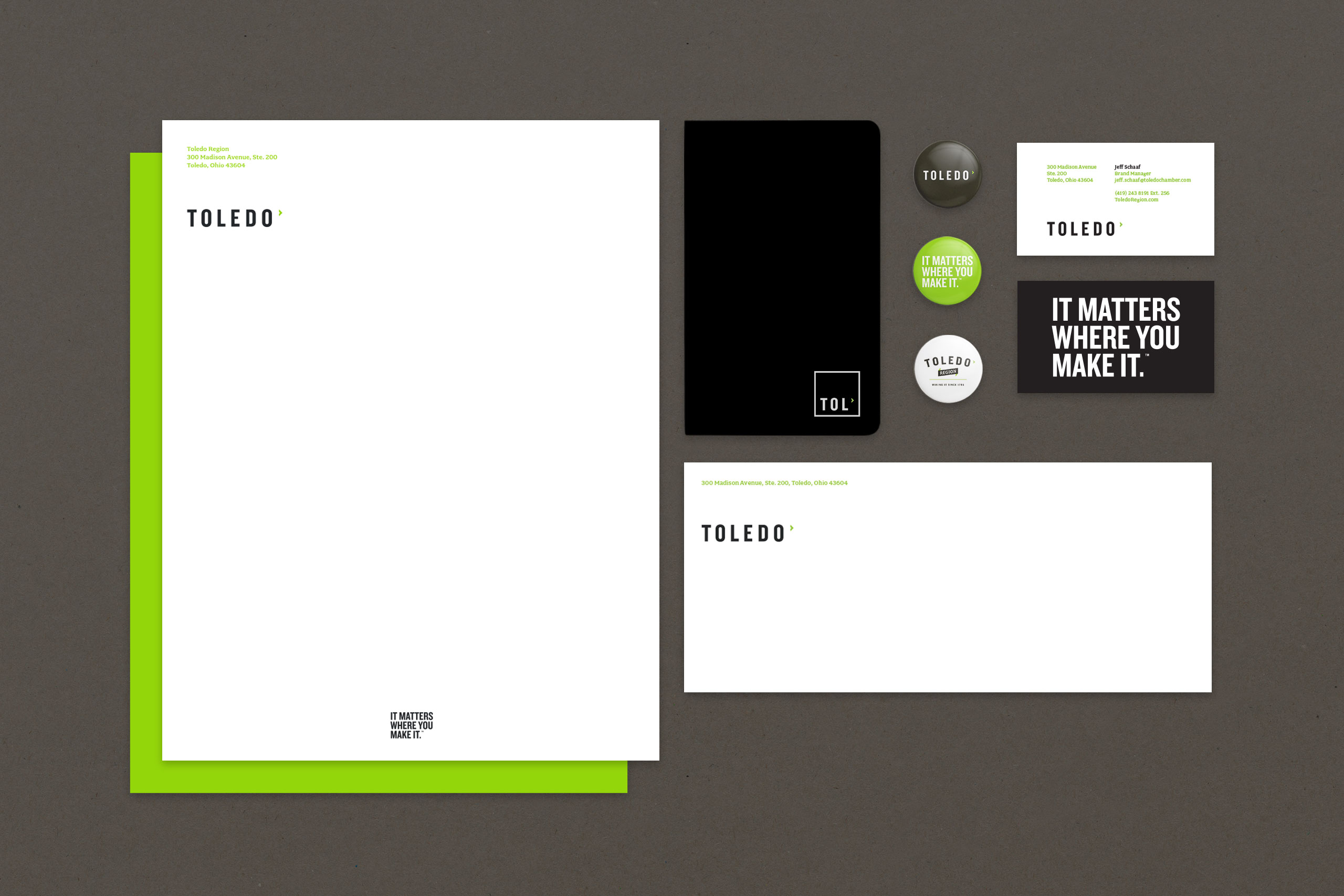 The Toledo Region brand identity system and tagline “It Matters Where You Make It” captures our inherently midwestern, inventive, hard-working character, as well as creating a platform that speaks to the incredible quality of life we enjoy here.